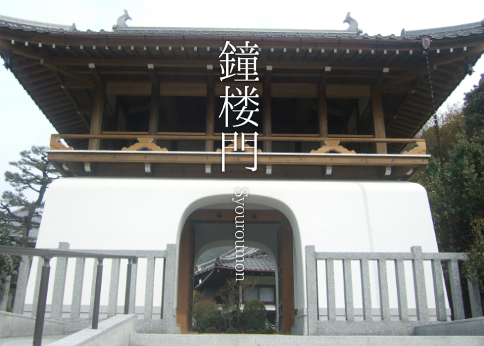 楼門と鐘楼が1つになった鐘楼門です。鐘楼門自体は特に珍しいものではありませんが、その多くは寺の周囲の壁と繋がっていますが、當山の鐘楼門は単独の建物となっています。それ故、白い漆喰で塗られた袴部分がよりその存在感を示してくれています。また、これだけ大きな鐘楼門は他に類を見ないものでありましょう。階上に吊られた大梵鐘は普通の鐘楼に吊られていたとしてでも十分に大きなものでありますが、それを階上に吊り上げてあるのですから、鐘楼門自体も巨大な建物となったのでしょう。さて、この鐘楼門。独特の形態であるが故に、大梵鐘の下をくぐり抜けて寺庭に入ります。真下から見上げれば、重さ一千貫目(約四トン)もの釣鐘です。幾分のスリルを味わえます。まさにとある能楽の一幕を思い出させてくれます。