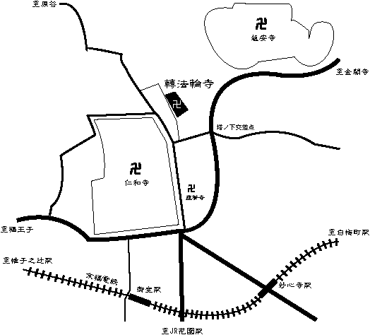 轉法輪寺のある場所は、仁和寺の東、竜安寺の西側に位置します。